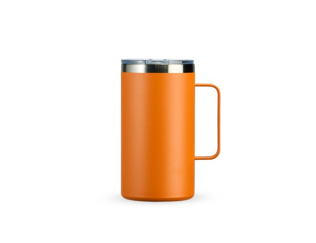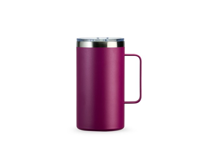 Caneca térmica em inox livre de BPA com pintura eletrostática e capacidade de até 500ml. Apresenta estrutura de parede dupla e vedação a vácuo, permitindo a conservação da temperatura de líquidos por mais tempo. Possui tampa em plástico com proteção para o bocal.