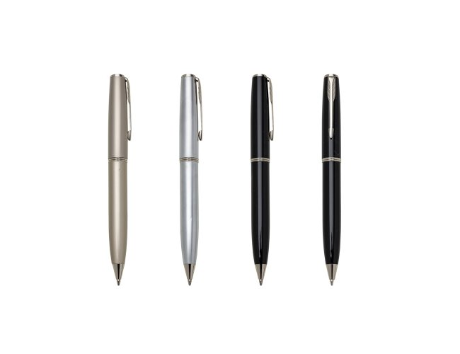 Caneta metálica com carga esferográfica azul 1.0mm e acionamento por rotação. OBS.: PEDIDO APENAS MÚLTIPLO DE 15 PEÇAS!