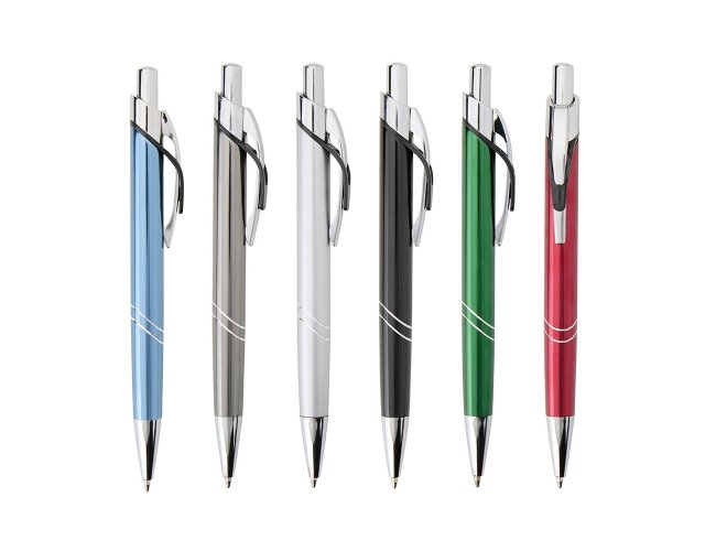 Elegante e funcional, esta caneta metálica é a combinação perfeita de sofisticação e praticidade para o dia a dia. Com acionamento por clique, oferece uma escrita suave e precisa graças à sua carga esferográfica azul de 1.0mm.