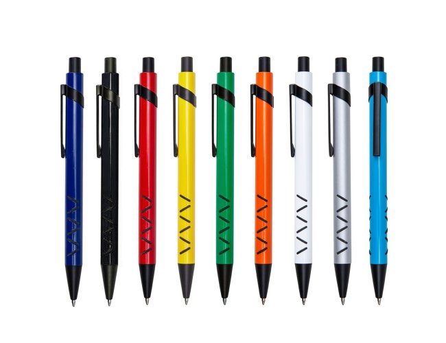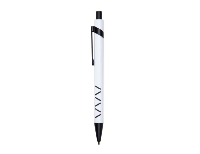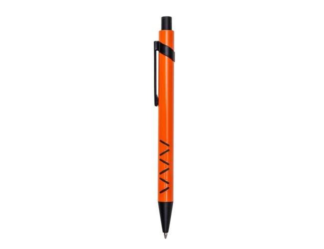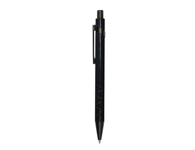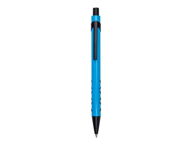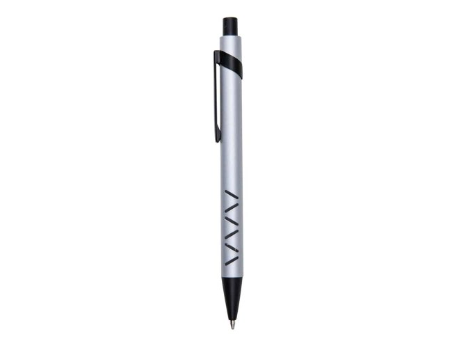 Caneta metálica com detalhe emborrachado, carga esferográfica azul e acionamento por clique. OBS.: PEDIDO APENAS MÚLTIPLO DE 50 PEÇAS!