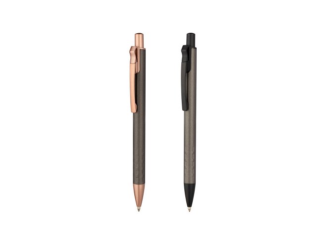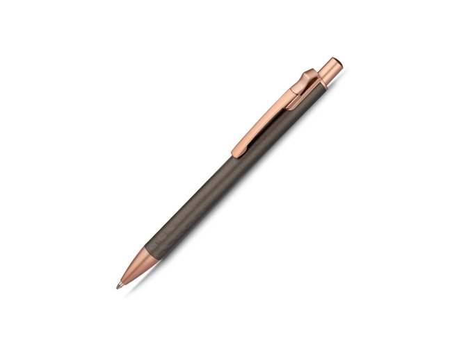 Caneta metálica com acionamento por clique, carga esferográfica azul 1,0mm.