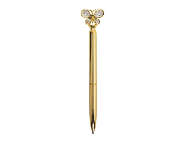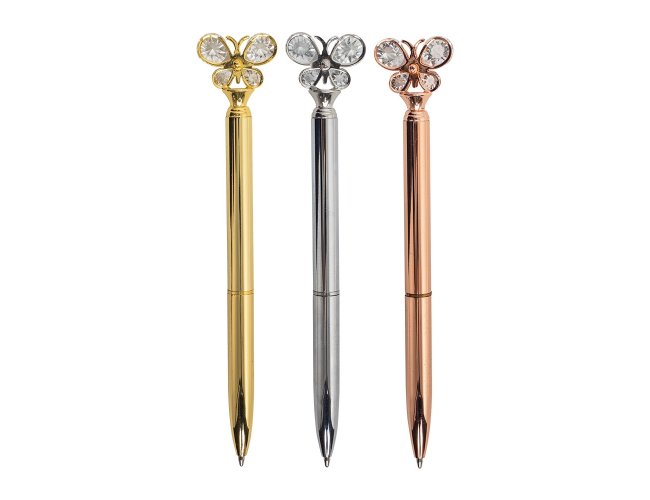 Caneta descontraída e prática para o dia a dia! Nossa caneta metálica com detalhe de borboleta adiciona charme a cada palavra escrita. Com mecanismo de rotação e carga esferográfica de 1mm, ela transforma as anotações em algo ainda mais inspirador e cheio de estilo.