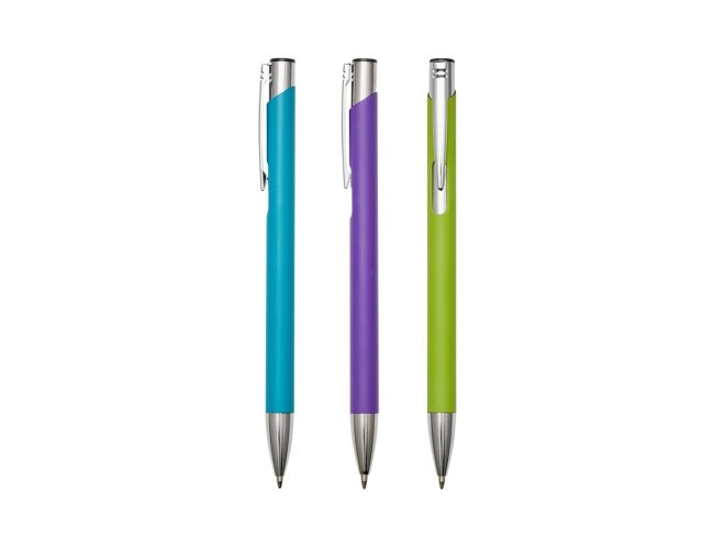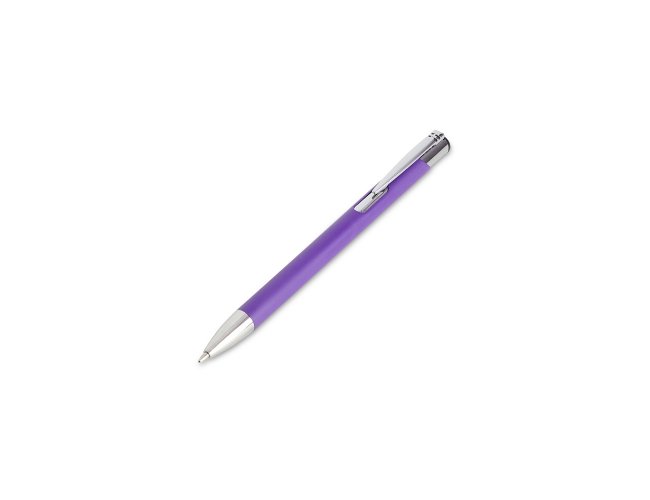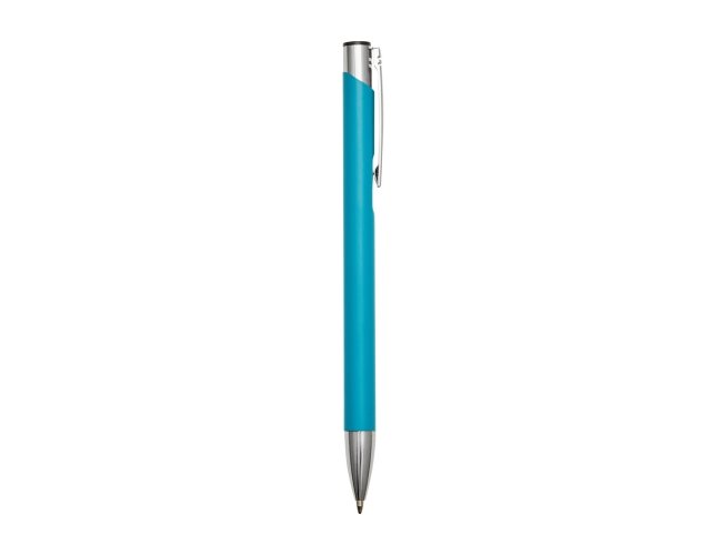 Caneta metálica com carga esferográfica azul 1.00mm e acionamento por clique.