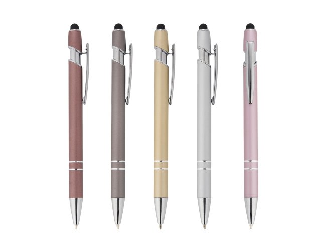 Caneta metálica touchscreen com acionamento por clique, carga esferográfica azul 1.0mm.