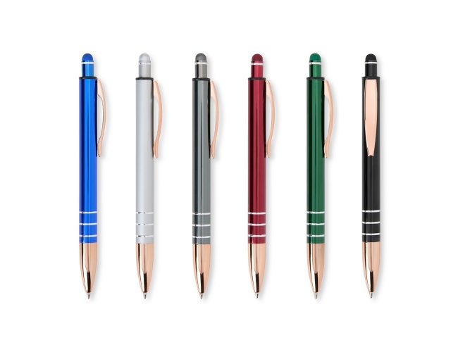 • Acionamento por Clique • Carga Azul • Escrita 1.0mm • Metálicas • Multifunções • Touch