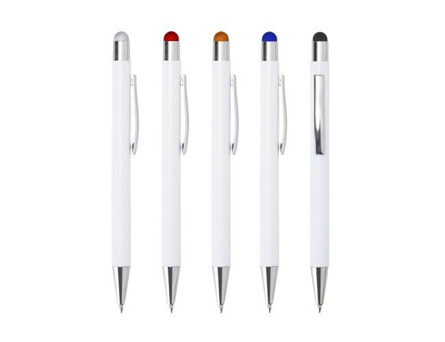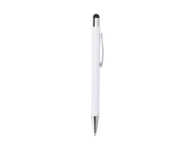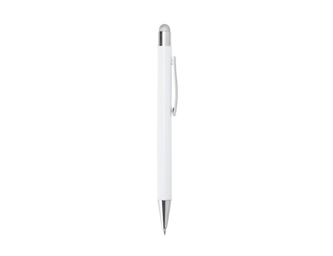 Caneta metálica touchscreen com carga esferográfica azul 1.0mm e acionamento por clique.
