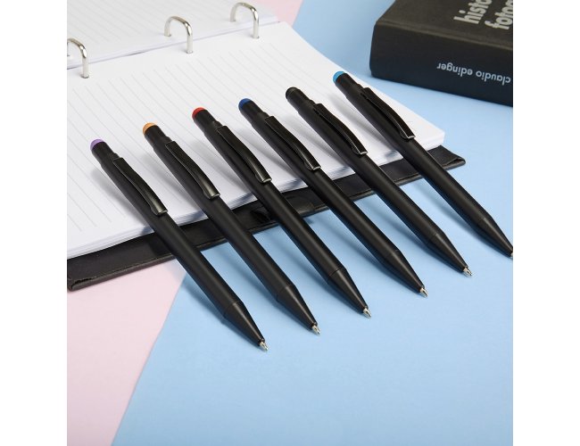 • Acionamento por Clique • Carga Azul • Escrita 1.0mm • Metálicas • Multifunções • Touch
