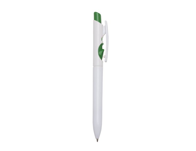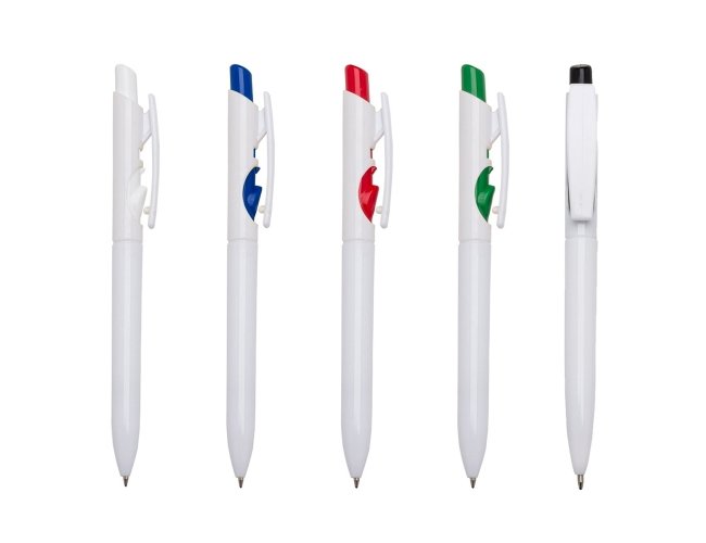 Caneta plástica com carga esferográfica preta 1.0 mm e acionamento por clique.