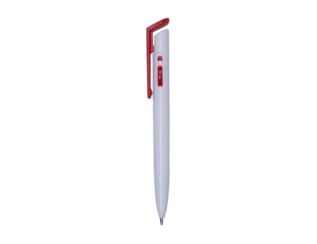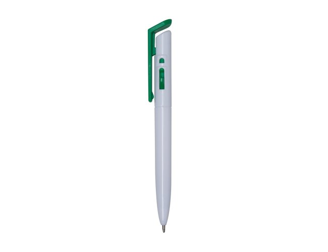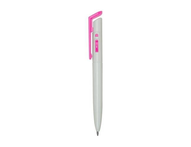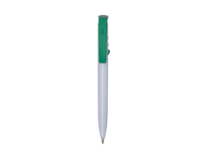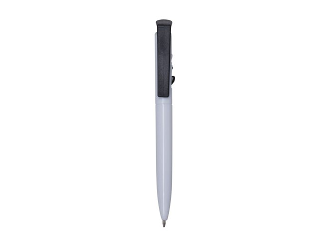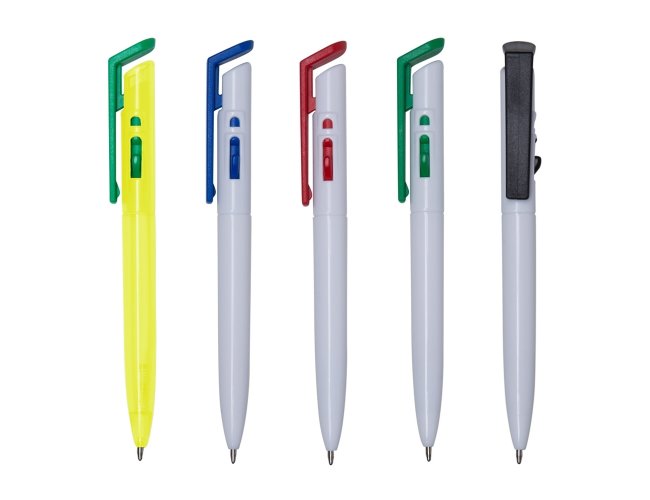 Caneta plástica com carga esferográfica azul 1.0 mm e acionamento por clique.