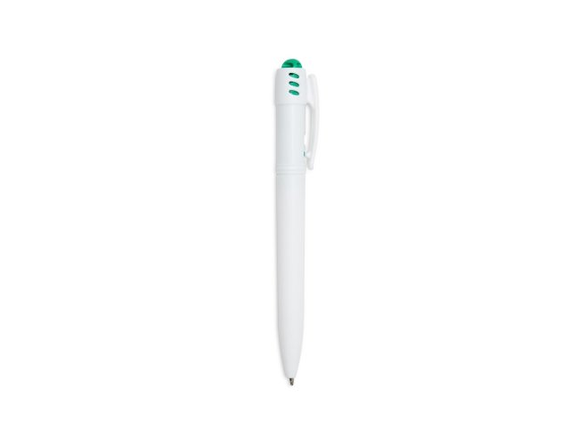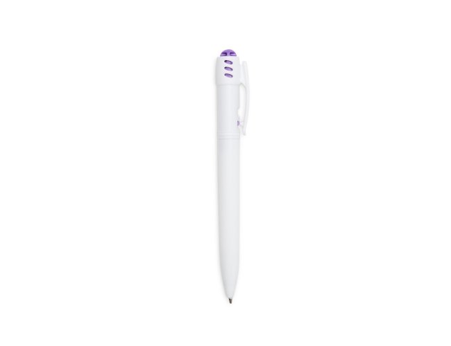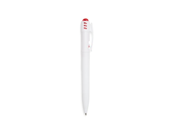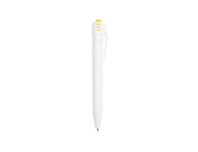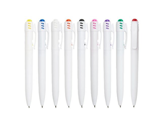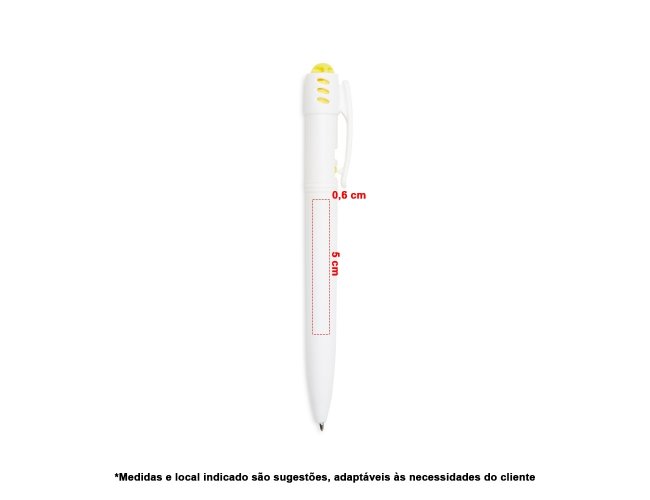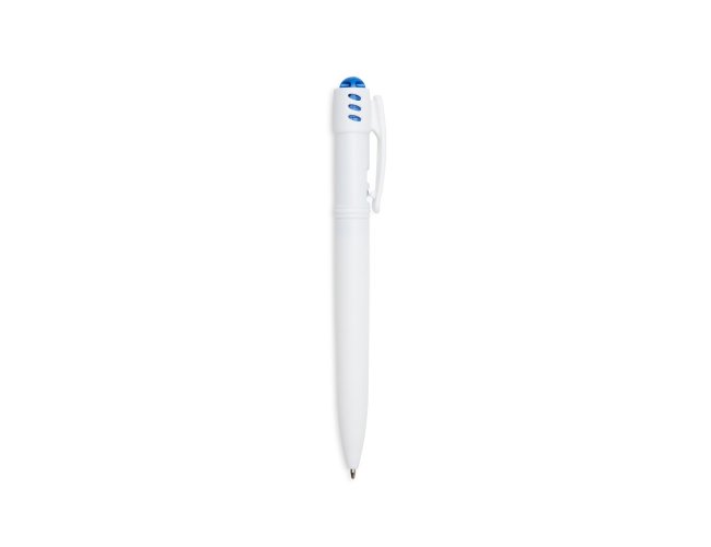 Caneta plástica com carga esferográfica azul 1.0 mm e acionamento por clique.