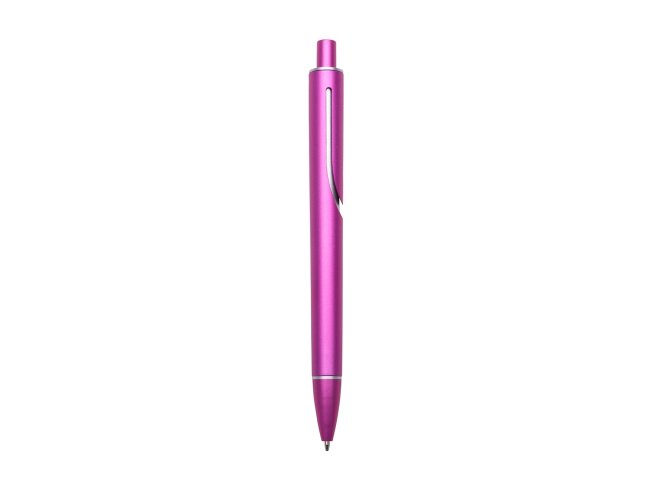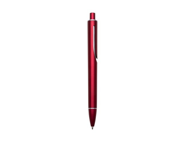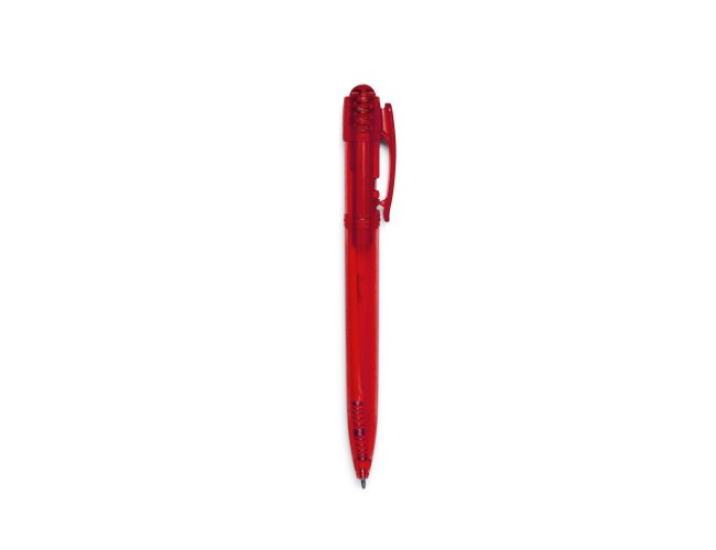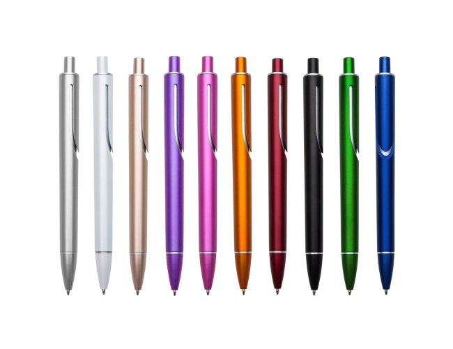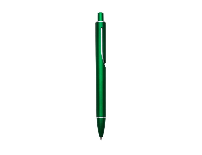 Caneta plástica com carga esferográfica azul 1.0 mm e acionamento por clique.