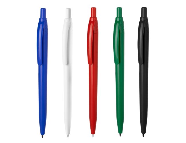 Caneta plástica com carga esferográfica azul 1.0mm e acionamento por clique.