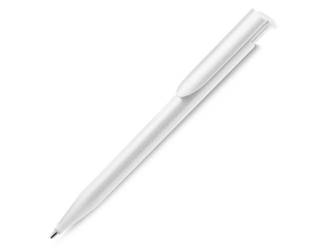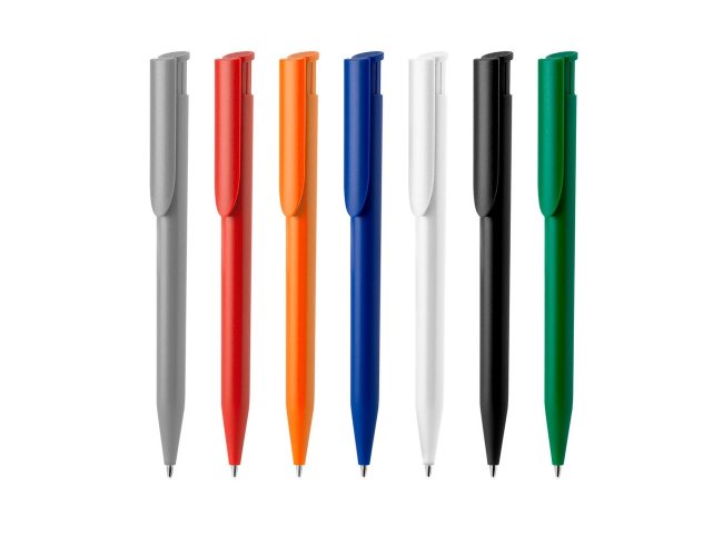 Caneta plástica com carga esferográfica azul 1.0mm e acionamento por clique.