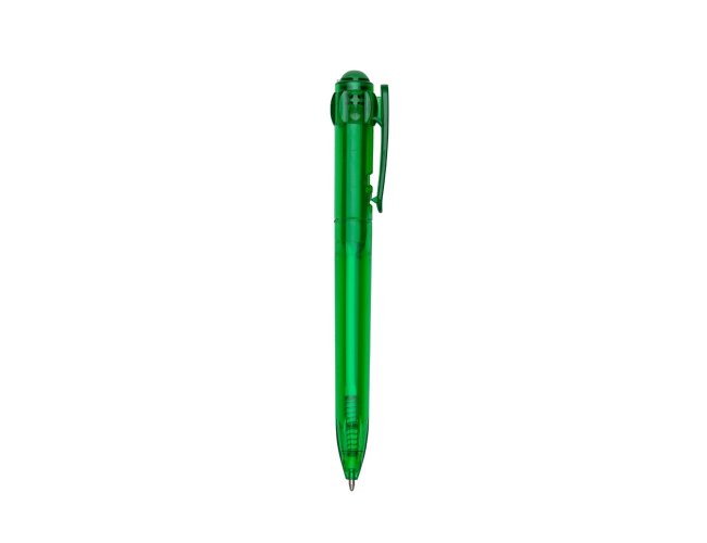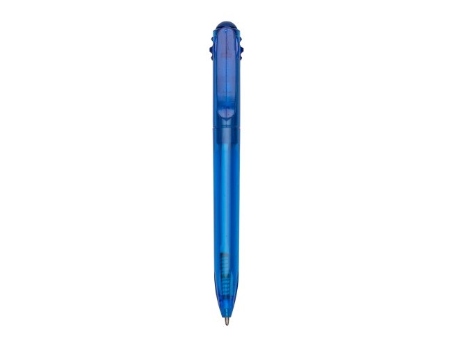 Caneta plástica com carga esferográfica azul 1.0mm, acionamento por clique.