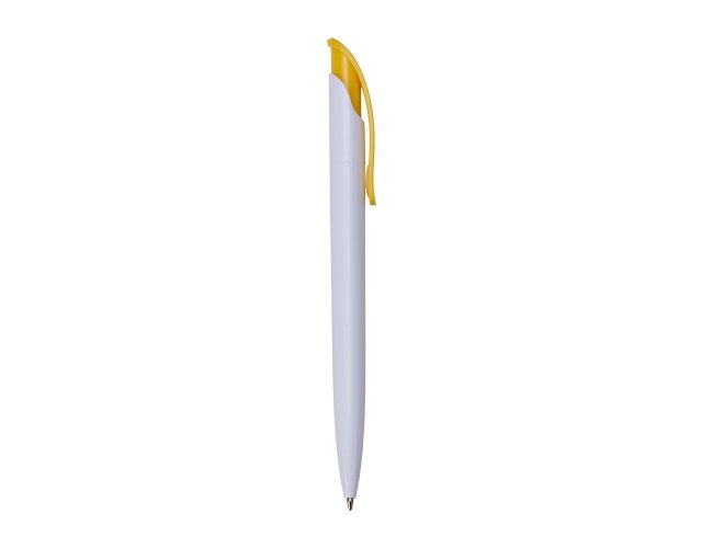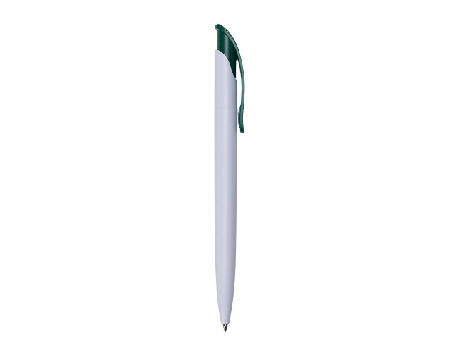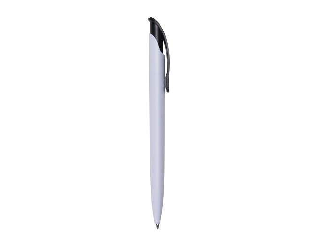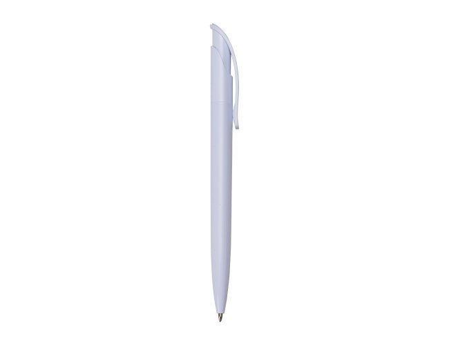 Caneta plástica com carga esferográfica azul 1.0 mm e acionamento por clique.
