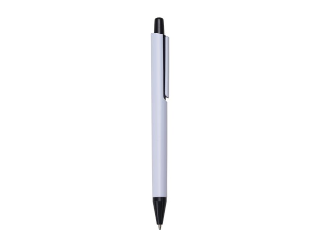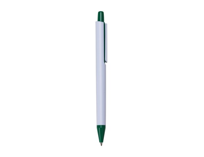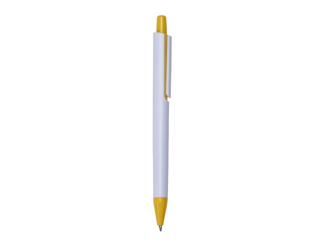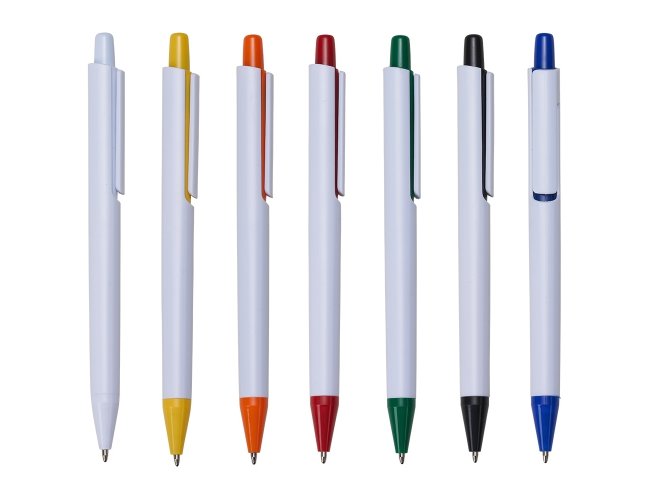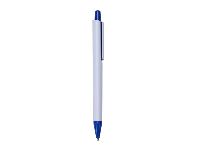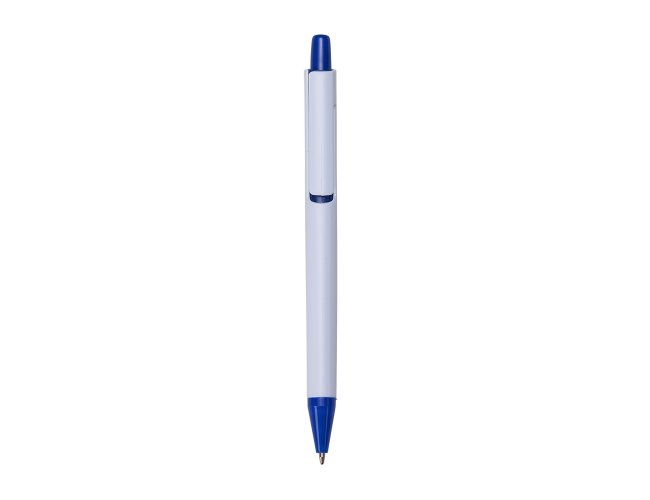 Caneta plástica com carga esferográfica azul 1.0 mm e acionamento por clique.
