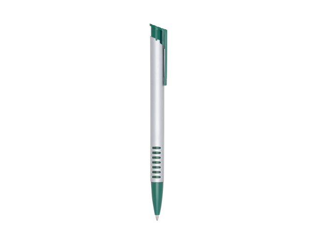 Caneta plástica com carga esferográfica azul 1.0 mm e acionamento por clique.