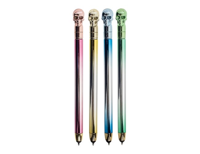 O toque de ousadia que o seu cotidiano precisava está nesta caneta estilizada, decorada com uma caveira em cores vibrantes. Feita de plástico, acionamento por rotação que oferece praticidade, enquanto a carga esferográfica azul de 1mm proporciona uma escrita suave e precisa. Além disso, conta com a funcionalidade touchscreen, permitindo navegação em dispositivos móveis com facilidade. Perfeita para quem busca um acessório único, que combina estilo e versatilidade!