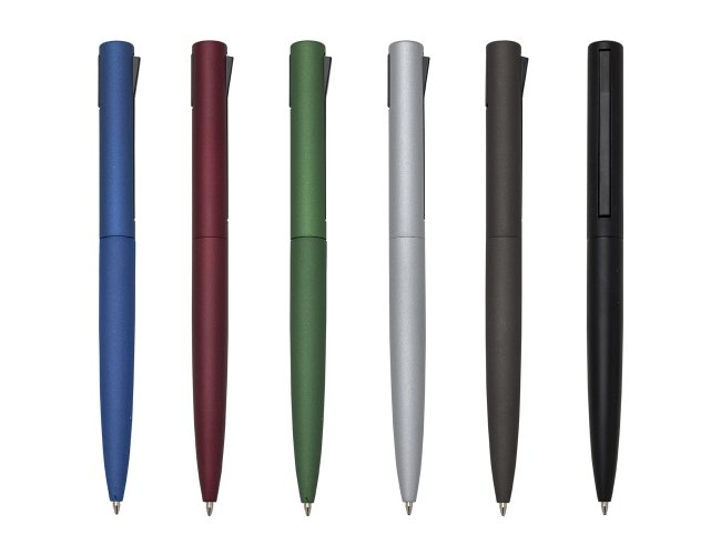 Caneta semimetálica com carga esferográfica azul e acionamento no clipe. OBS.: PEDIDO APENAS MÚLTIPLO DE 50 PEÇAS!