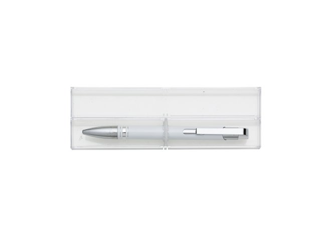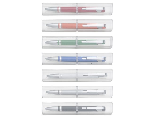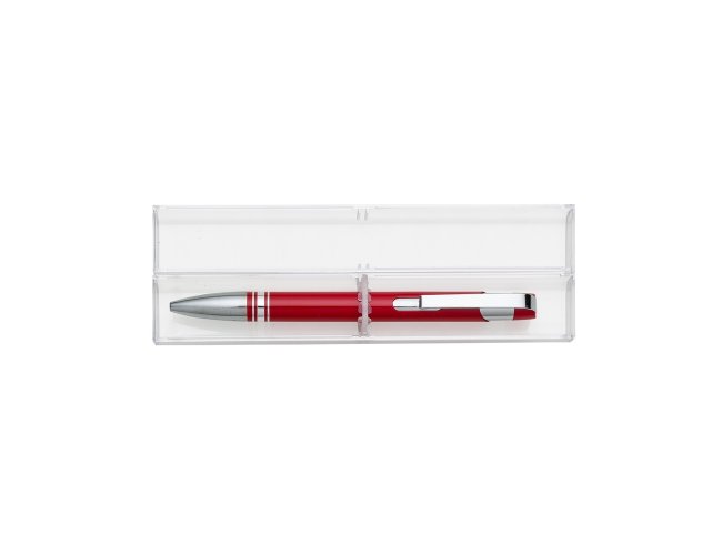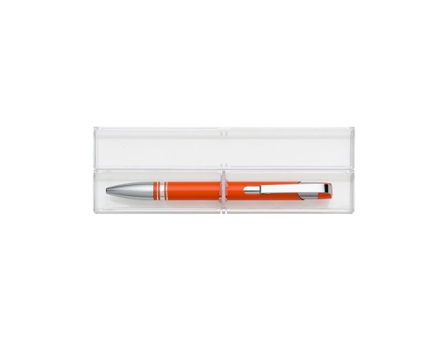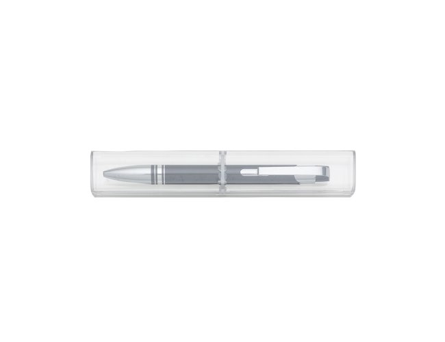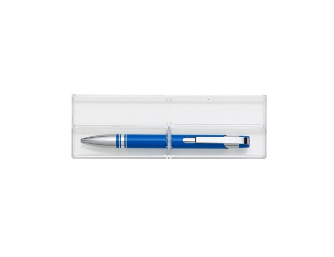 Conjunto caneta com estojo de acrílico. Caneta semimetálica com carga esferográfica azul e acionamento por clique. OBS.: PEDIDO APENAS MÚLTIPLO DE 50 PEÇAS!