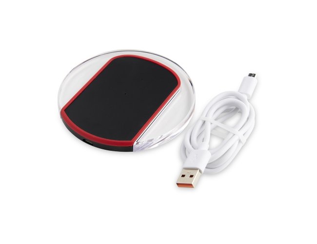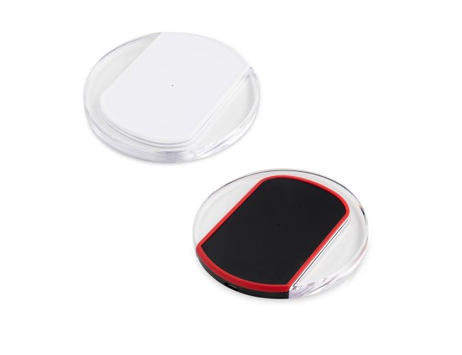Carregador via indução formato disco com indicador de funcionamento em led, feito em plástico ABS. Acompanha cabo USB. OBS.: O CARREGADOR APENAS TRANSFERE CARGA, ELE NÃO POSSUI BATERIA PARA ARMAZENAMENTO (NÃO É UM POWER BANK).