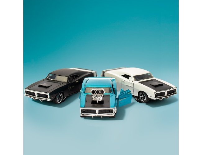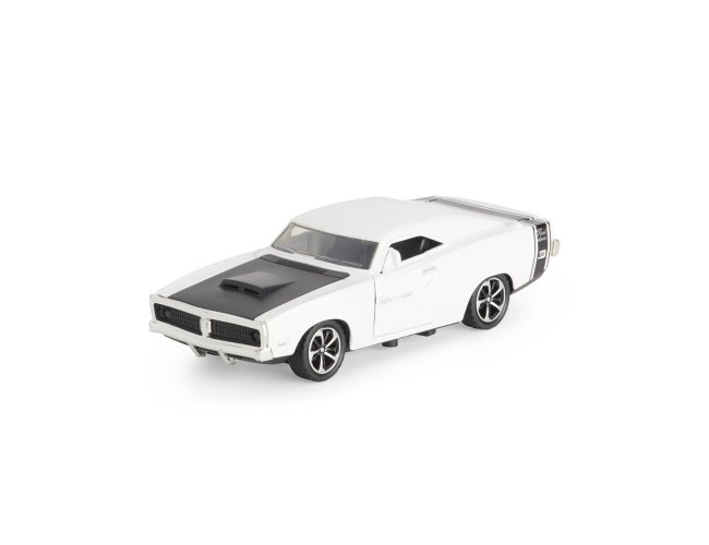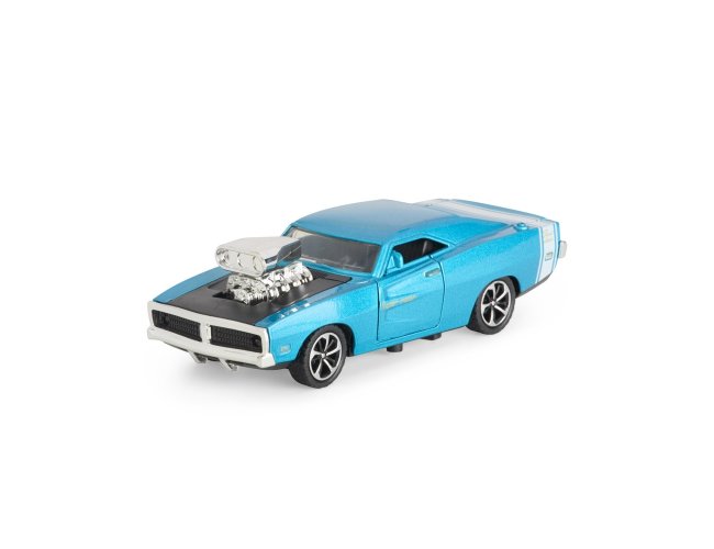 Carro miniatura com estrutura feita em metal e plástico. Com design esportivo, possui mecanismo de fricção nas rodas traseiras.
