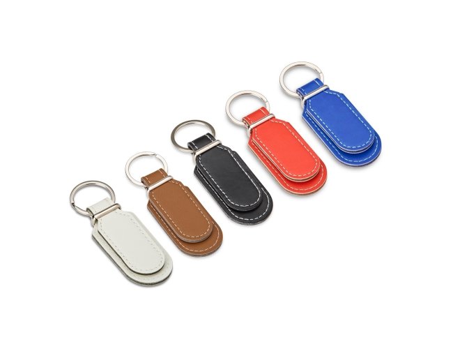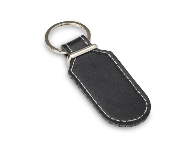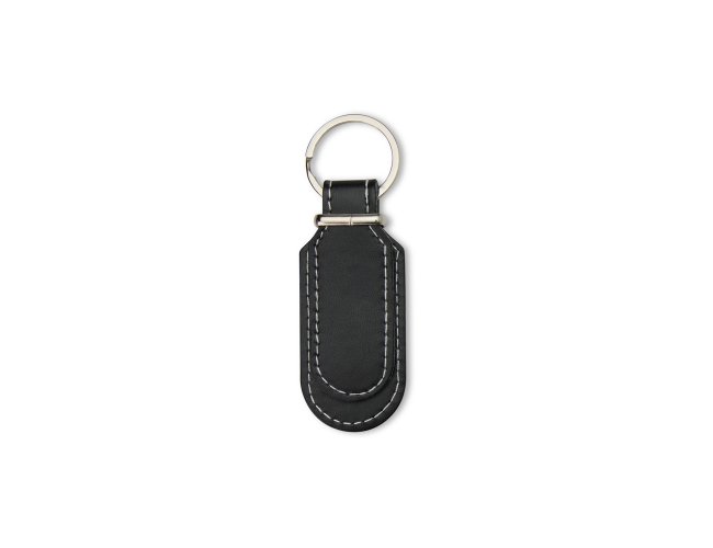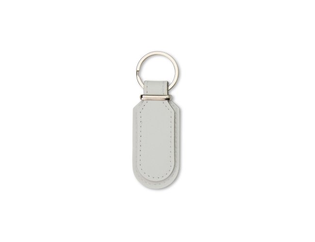 Um chaveiro minimalista feito em couro sintético, com frente e verso lisos e argola metálica. É ótima opção para organizar chaves ou usar como um objeto decorativo.