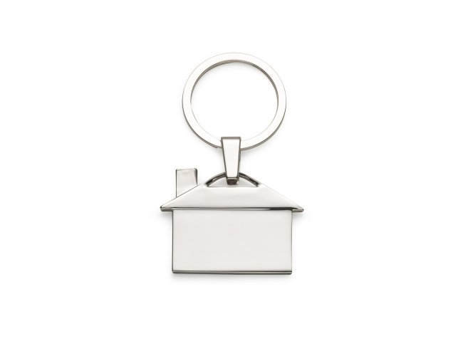 Chaveiro metal brilhante formato casa, frente e verso da chapa liso.