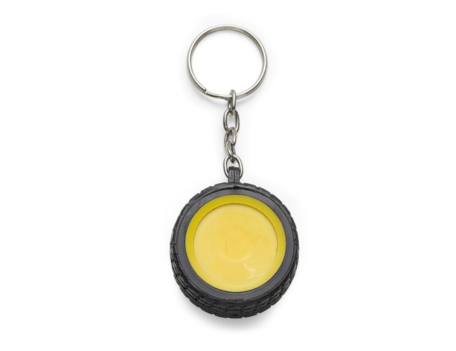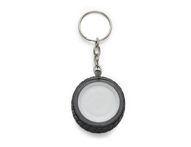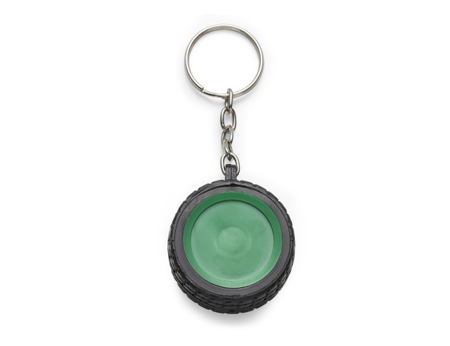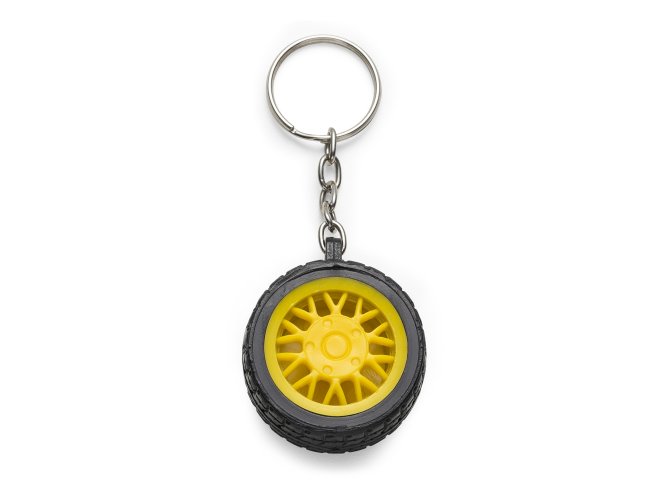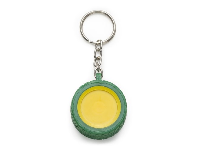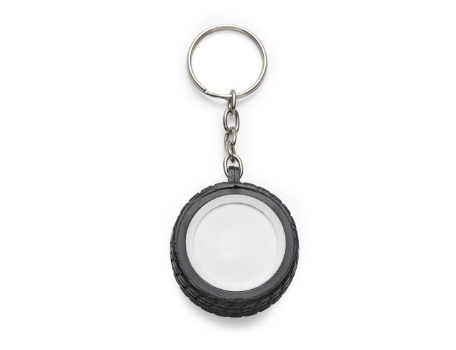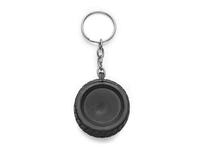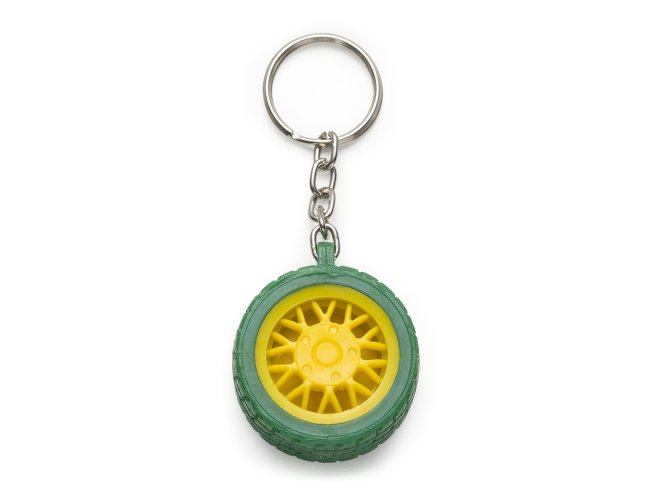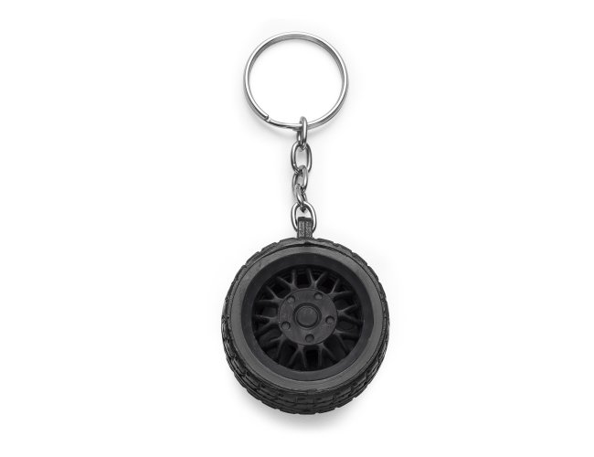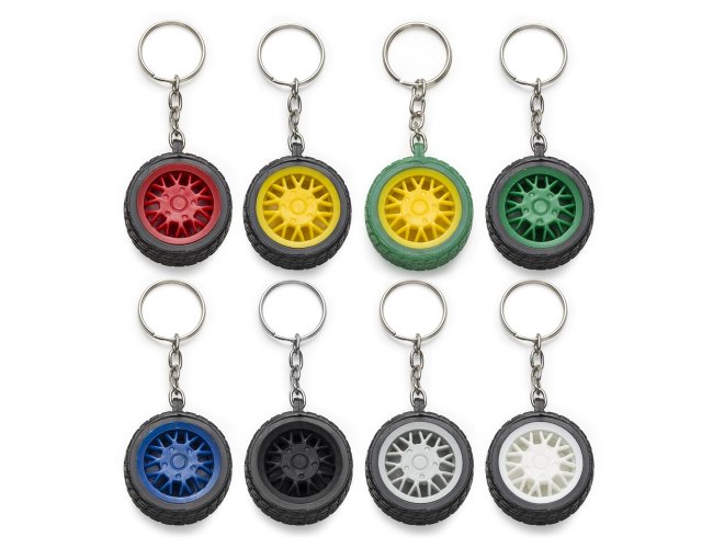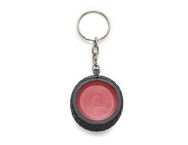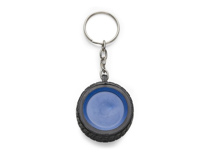 Chaveiro plástico formato pneu, aro detalhado plástico colorido de um lado e lado inverso liso(possível aplicar resina). Pneu emborrachado.