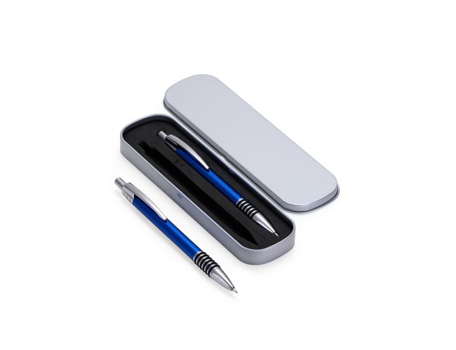 Com este conjunto de caneta e lapiseira metálicas, escrever será uma experiência ainda mais sofisticada e elegante. O estojo em metal que as acomoda, possui revestimento em espuma para evitar riscos. A caneta possui carga esferográfica azul de 1.0mm, com acionamento por clique, já a lapiseira possui grafite 0.7mm.