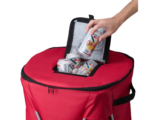 O cooler perfeito para eventos ao ar livre! Com uma impressionante capacidade de 62 litros, este cooler é produzido em poliéster com revestimento térmico em PEVA atóxico e soldado, garantindo que não haja vazamentos. Ideal para festas, ele cumpre perfeitamente o papel de manter as bebidas geladas, podendo até mesmo adicionar gelo em seu interior. Para preservar ainda mais a temperatura durante o uso, há uma pequena tampa de fácil acesso, evitando a necessidade de abrir o cooler completamente. Com um pedestal metálico de manuseio prático e sustentação firme, o cooler acompanha um estojo de poliéster para manter tudo organizado e pronto para o próximo evento.