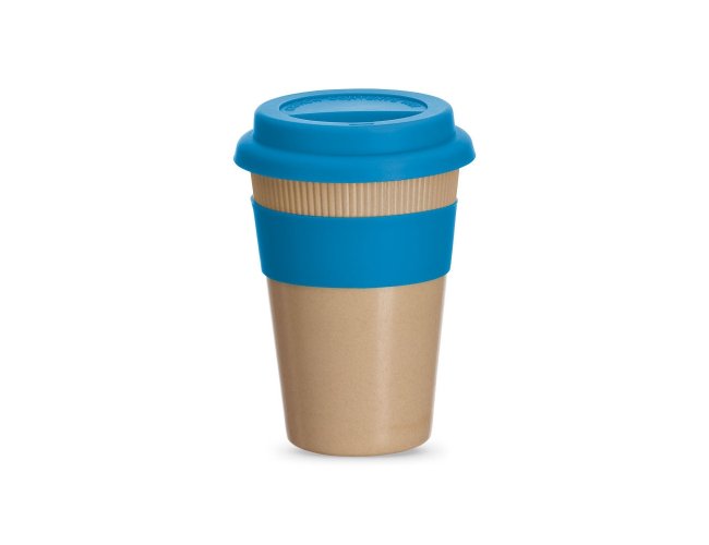 Copo fibra de bambu 450ml. Tampa de silicone com abertura para bocal e luva de silicone colorida.