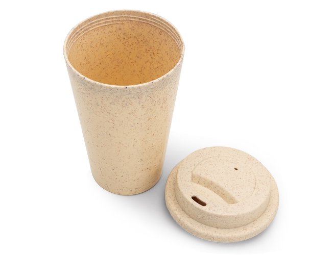 Copo fibra de trigo 470ml. Produzido em polipropileno e livre de BPA, possui tampa rosqueável com abertura de bocal. Pode ser levado ao micro-ondas e lava-louças.