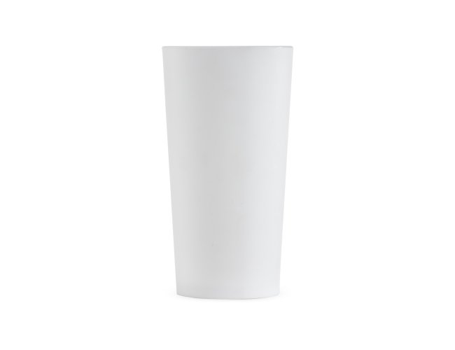 Copo plástico 420ml produzido em polipropileno (PP) com acabamento fosco leitoso.