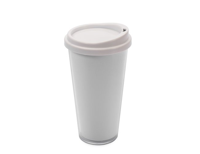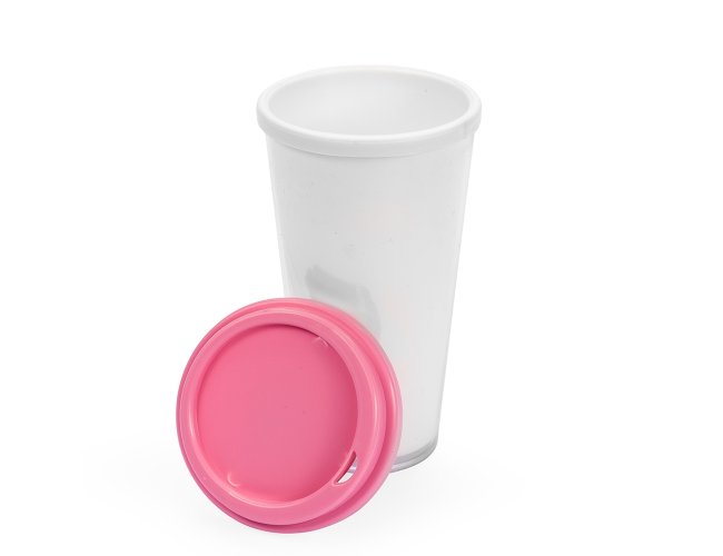 Um copo em plástico de camada dupla que é uma opção versátil para as mais diversas situações. A construção resistente tanto do copo interno branco quanto do copo externo transparente ajudam em um manuseio seguro e livre do contato direto com o frio ou calor intenso do líquido. Além disso, conta com uma tampa rosqueável de bocal, o que o transforma em uma companhia para aquela dose de café no dia a dia.