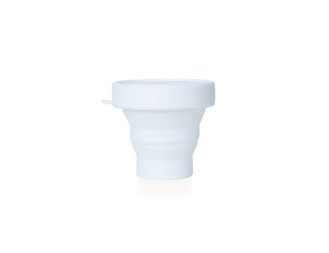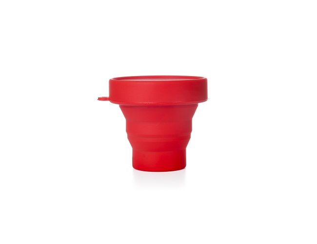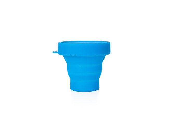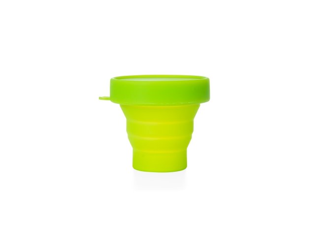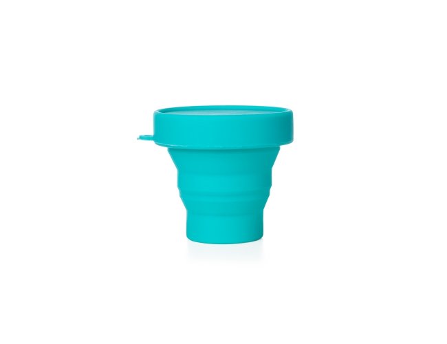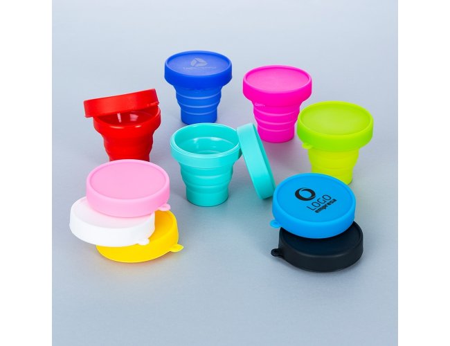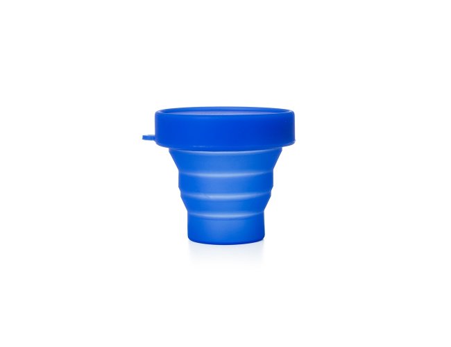 Copo retrátil com capacidade de 150ml, livre de bpa. Contém tampa de encaixe com acesso para chaveiro.