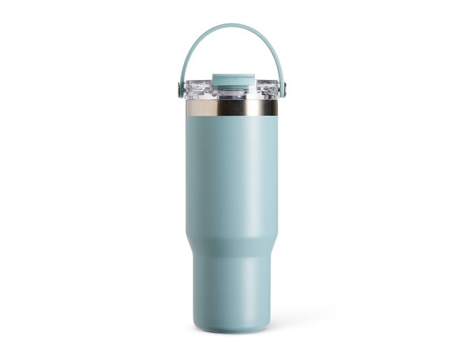 Copo térmico em aço inox com capacidade de até 900ml. Apresenta construção em parede dupla, tampa rosqueável plástica com vedação a vácuo e tampa adicional com proteção para o bocal, o que permite a conservação da temperatura de líquidos por mais tempo. Conta ainda com bico flip, canudo plástico interno removível e alça para transporte. Sua pintura eletrostática confere uma cor duradoura e um acabamento de alta qualidade.