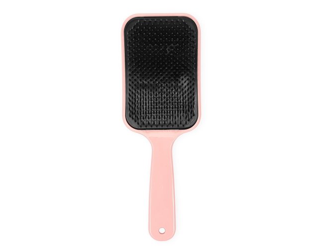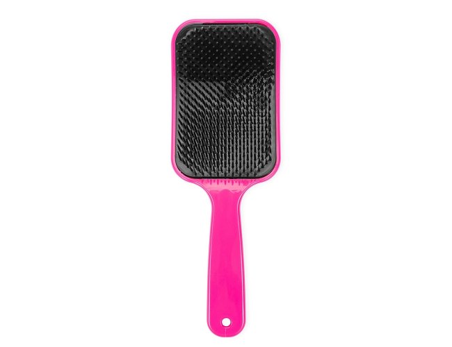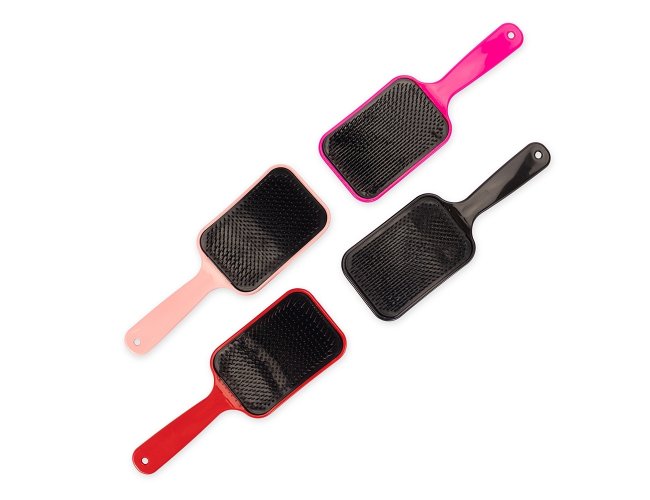 Esta escova raquete ajuda a construir penteados mais belos e completos para o dia a dia. Feita inteiramente em plástico, ela desembaraça e alinha facilmente os fios sem quebrá-los. Conta com cerdas flexíveis posicionada em alturas diferentes, o que a transforma em uma escova seja ideal para todos os comprimentos e curvaturas de cabelos, especialmente os mais longos e volumosos.