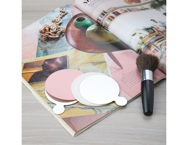 Medidas aproximadas para gravação: (CxL): Espelho 5 cm x 5 cm - Estojo 6 cm x 5,5 cm