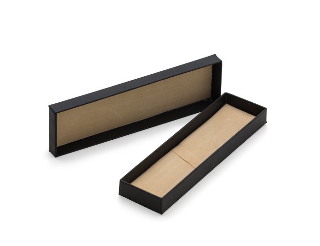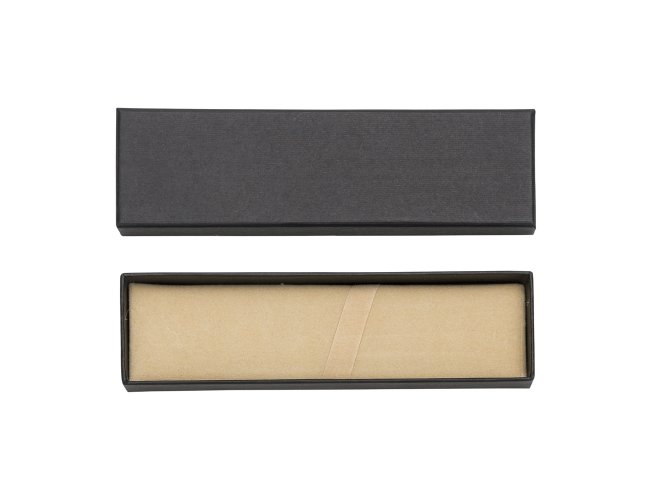 Estojo de papelão para uma caneta. Parte interna revestida com veludo e possui elástico para fixar a caneta. OBS.: PEDIDO APENAS MÚLTIPLO DE 50 PEÇAS!