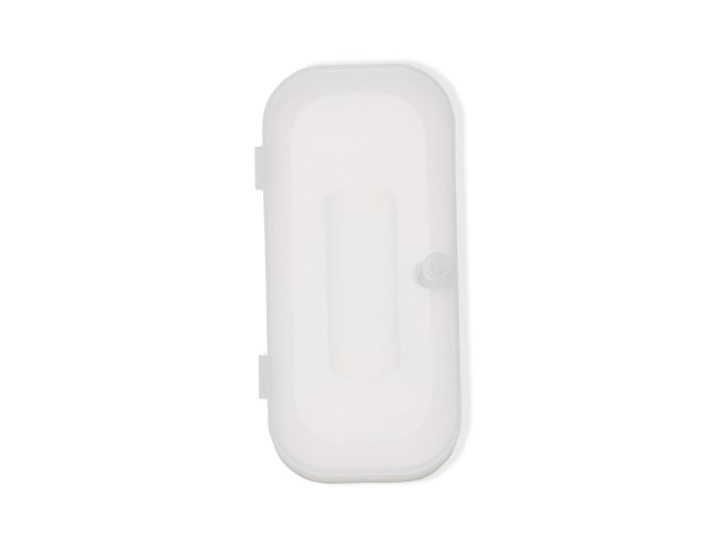 Estojo para pen drive Pico A em plástico transparente com parte interna revestida de espuma, fecha por encaixe.