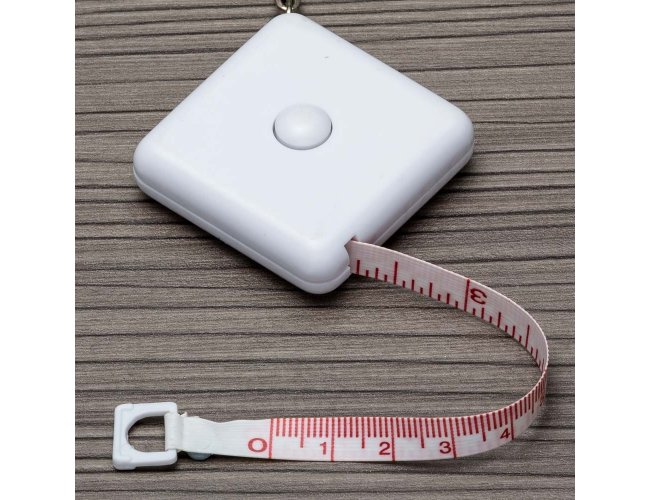 Fita métrica em plástico com formato quadrangular. Conta com fita flexível em PVC e fibra de vidro com marcação dupla face, puxador de plástico na ponta e alcance máximo de 1 metro. Conta com botão de retração automática da fita em um único acionamento e argola metálica.