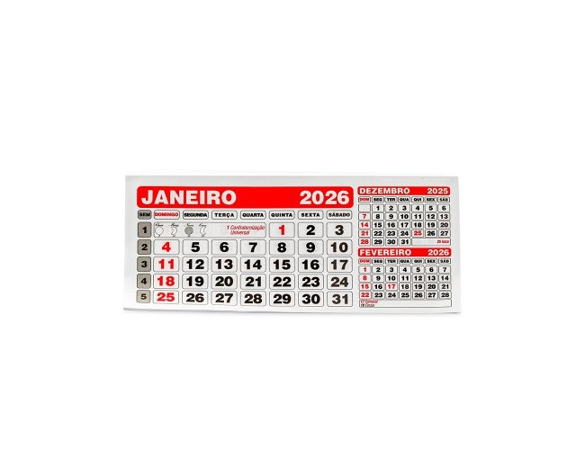 Folhinha calendário 2026, jogo com 100 unidades. OBS.: PEDIDOS APENAS MÚLTIPLOS DE 100 PEÇAS!