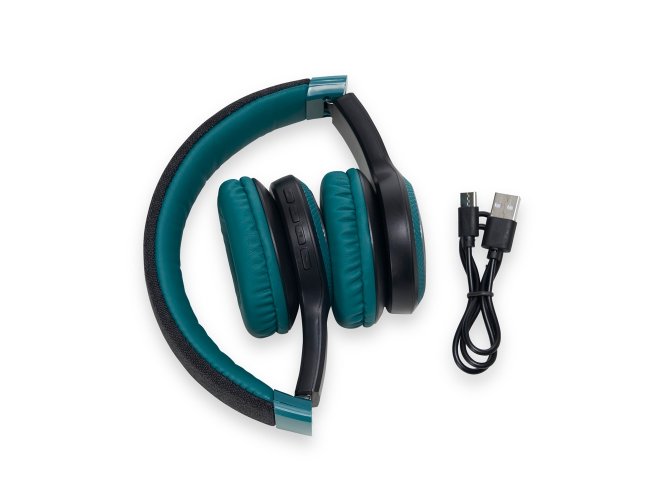 Fone de ouvido bluetooth. Possui revestimento de couro sintético com espuma interna, garantindo um ótimo isolamento do som externo, luzes LED RGB, hastes articuláveis com altura regulável, permitindo que o fone seja guardado de maneira compacta, revestimento de tecido na parte superior da hastes, microfone para atendimento de chamadas, botões Play/Pause, M (modo), + e ? no corpo do fone. Executa nos modos bluetooth, Auxiliar P2, Rádio FM e Cartão TF (Micro sd). Acompanha cabo USB tipo-C.