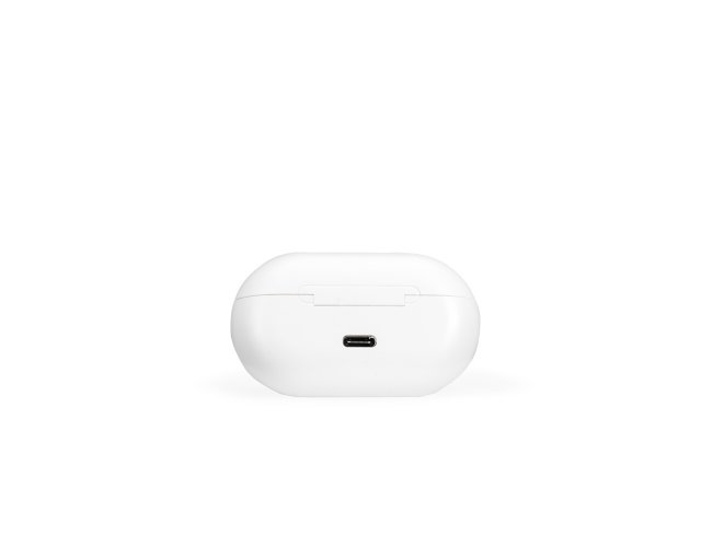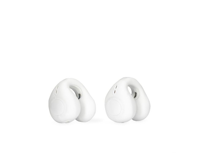Fones de ouvido sem fio com estrutura leve e confortável feita em plástico. Seu formato ear cuff, semelhante a um par de brincos, permite o encaixe ao redor das orelhas sem entrar em contato com o canal auditivo, ideal para uso prolongado. Sua conexão via Bluetooth 5.3 oferece estabilidade de áudio com menor consumo de energia. Cada fone apresenta um botão multifunções, com comandos por toque para trocar músicas e controlar o volume. Acompanha cabo USB-C para carregamento.