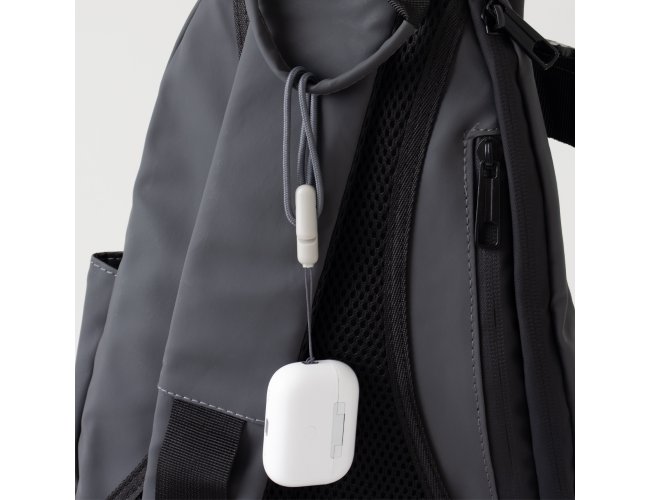 Fone de ouvido bluetooth com comandos touch e case carregador de fechamento magnético. Acompanha USB Lightning e cordão de nylon com clipe integrado que facilita a fixação em mochilas e bolsas.