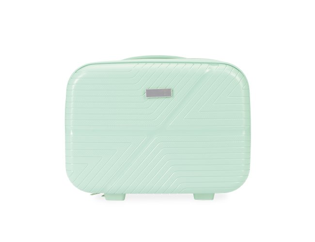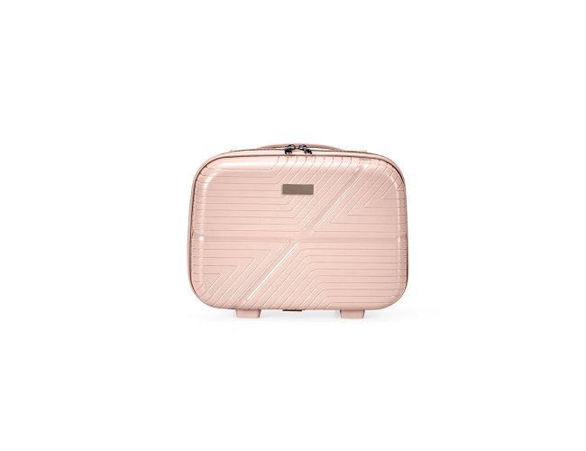 Frasqueira de viagem em plástico rígido com capacidade de até 10 litros. Apresenta três compartimentos internos, incluindo bolso em tela de nylon com zíper. Além disso, possui quatro apoios reforçados na parte inferior, alça de mão e elástico na parte posterior para encaixe em malas maiores. Acompanha placa em metal para personalização.