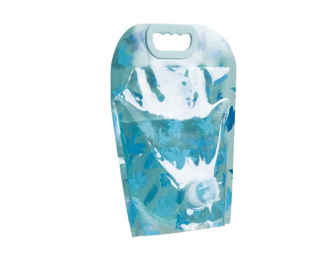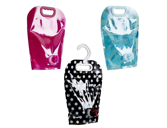 Galão dobrável de plástico com 3 litros. Galão colorido com pegador plástico superior, acompanha torneira plástica com lacre, basta removê-lo e encaixá-lo no suporte inferior pressionando pra dentro. Para utilização da torneira levante as hastes laterais.