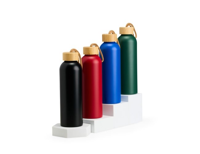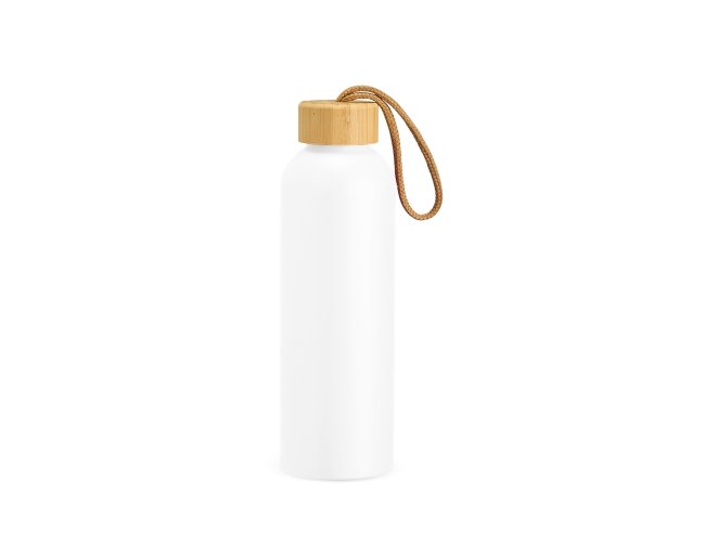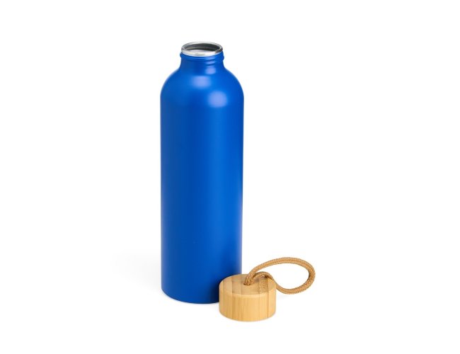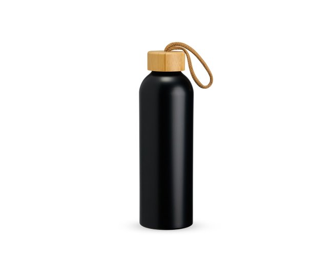 Garrafa de alumínio com capacidade de até 800ml. Feita com material de alta resistência, é uma opção prática para o dia a dia. Além disso, possui tampa rosqueável de bambu com alça de algodão para facilitar o transporte.