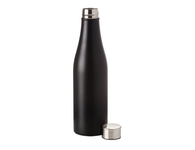 Garrafa inox com capacidade de 1 litro, com tampa rosqueável.